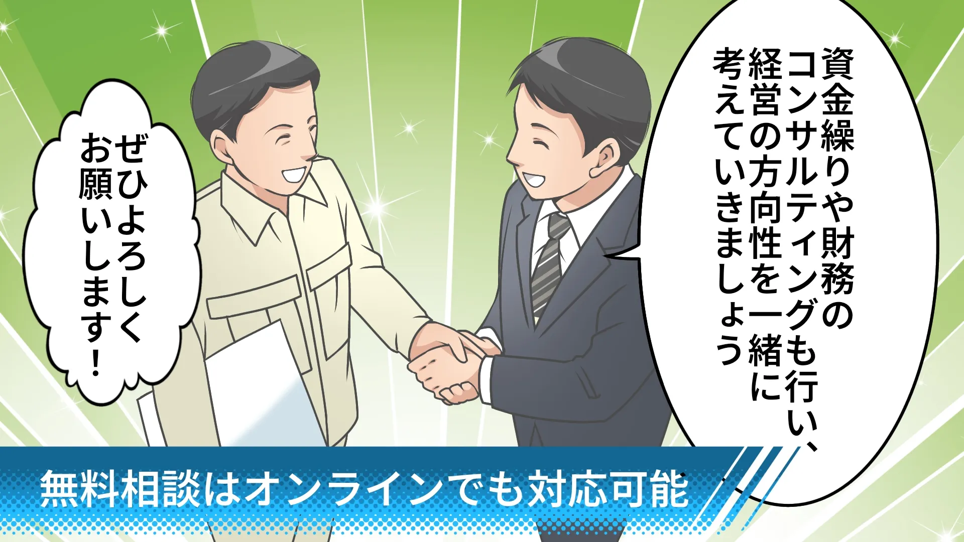 事業者の状況に寄り添いながら、伴走型で丁寧にサポートいたします
